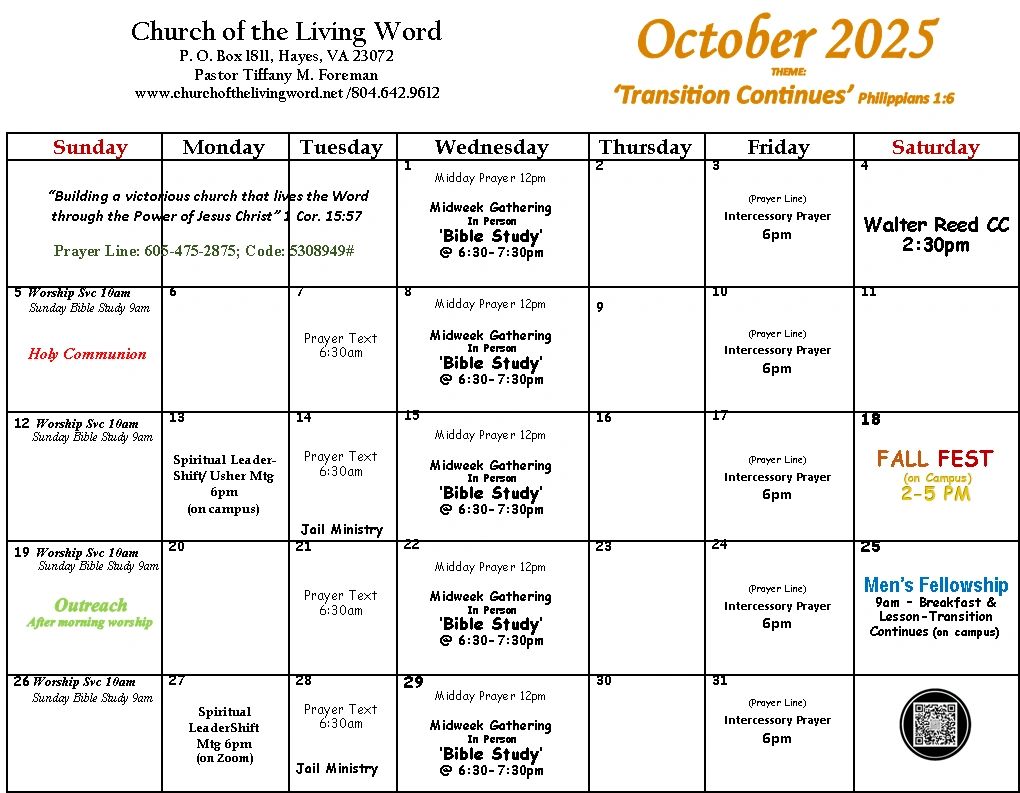 Church of the Living Word 8144 Tidemill Road Hayes, VA 23072 US